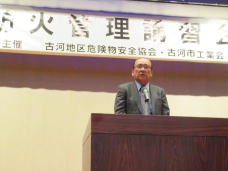 古河市工業会と古河地区危険物安全協会との共催により防火管理講習会が秋の火災予防週間にあわせてユーセンター総和で開催されました。今回の講演は、危険物保安技術協会事故防止調査研究センター 塚目企画調査課長による「危険物施設の事故事例とその対策」でした。